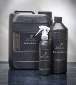 Jean Peau Berkenlotion – Hondenvachtverzorging – 1000 ml direct bestellen in onze webshop! Heerlijke verfrissende lotion De Jean Peau Berkenlotion is een lotion met een verfrissende werking. De lotion is samengesteld uit natuurlijke proteïnen, werkzame voedingsstoffen en de sappen van de berkenboom. Deze lotion laat de vacht glanzen, zorgt voor versteviging van de haarschacht en voor het herstellen van de originaliteit van de vacht na een tentoonstelling. Als je viervoeter twee dagen achter elkaar show heeft, dan moet je hem op dag twee of opnieuw wassen, of je gebruikt de Berkenlotion! Wanneer je de Berkenlotion in combinatie met een waterblazer gebruik, is jouw hond weer helemaal klaar voor de show! De Berkenlotion is verkrijgbaar in 200 ml en 1000ml. Over Jean Peau De producten van Jean Peau staan reeds jaren bekend om zijn kwalitatief hoogwaardige producten die ook veelvuldig gebruikt worden op shows en door trimsalons. Jean Peau heeft een complete lijn voor de verzorging van de vacht, op basis van natuurlijke kruidenextracten. De producten verbeteren de vetlaag van de huid juist, in plaats van het af te breken! Jean Peau is dé oplossing voor diverse huid- en vachtproblemen. Niet alleen voor de periodieke verzorging, maar ook voor de dagelijkse verzorging van jouw huisdier tref je diverse producten aan die ervoor zorgen dat jouw huisdieren in topconditie zijn en blijven. . Alle Jean Peau voor uw Hond uit voorraad leverbaar!