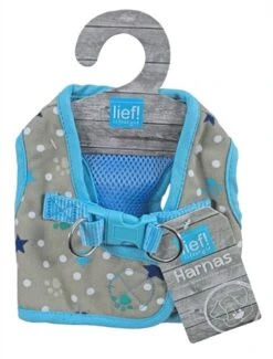 Het Boys Hondenharnas van lief! is een eenvoudig harnas met vrolijke sterretjes- en pootjesprint. U kunt de lijn vastmaken aan de twee D-ringen die bevestigd zijn aan het tuig. Hierdoor heeft u betere controle over uw hond tijdens het wandelen.