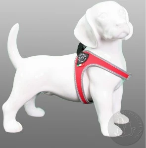 Hondentuig Easy Fit Classic Reflecterend Rood Dit tuigje is geschikt voor zeer kleine en kleine hondjes. De gepatenteerde Tre Ponti ® hondentuigjes hebben een bijzondere pasvorm. Hierdoor wordt de druk op de gewrichten aan de voorzijde van de hond en de druk op de nek verlicht. De hondentuigjes zijn bijzonder sterk en degelijk. Het materiaal is hypo-allergeen zodat er geen allergische reacties kunnen optreden, verder houdt het geen haren of geurtjes vast, is het waterdicht en duurzaam. Het is een instapmodel tuigje dat u gemakkelijk aandoet en uittrekt. Het tuigje heeft een kliksluiting. De hondenriem maakt u vast aan de twee D ringen. Hierdoor wordt er geen druk uitgeoefend op de sluiting. De reflecterende bies zorgt voor betere zichtbaarheid bij minder goede lichtomstandigheden. Het tuigje wordt geheel met de hand in Italië gemaakt. Kleur: rood. Leverbaar in de volgende maten: Bepaal de juiste maat voor uw hond: